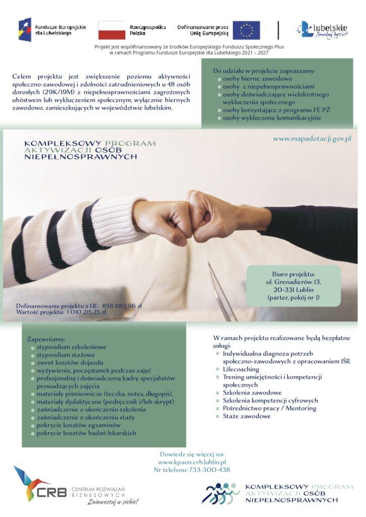 Informujemy o realizacji projektu przez Centrum Rozwiązań Biznesowych „Kompleksowy program aktywizacji osób niepełnosprawnych”.