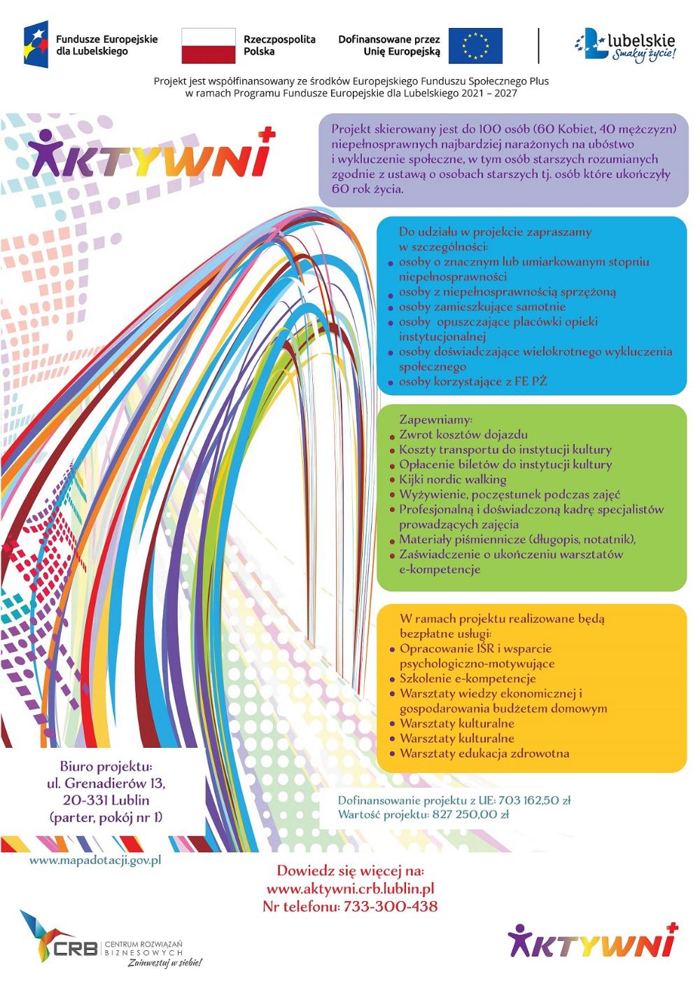 Miejski Urząd Pracy w Lublinie informuje, że Fundacja Centrum Rozwiązań Biznesowych realizuje projekt „Aktywni +”.