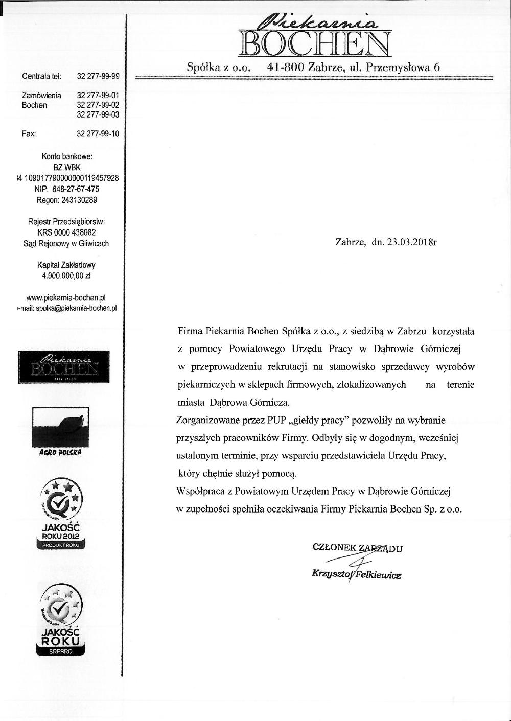 Referencje - Powiatowy Urząd Pracy w Dąbrowie Górniczej