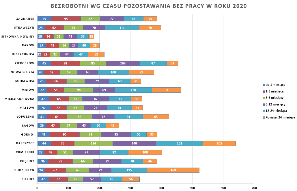 Statystyki - Stan bezrobocia w gminach 2020 - Powiatowy Urząd Pracy w Kielcach