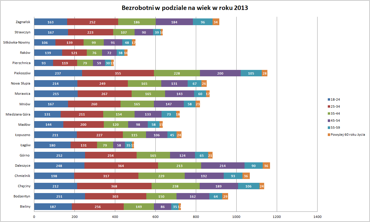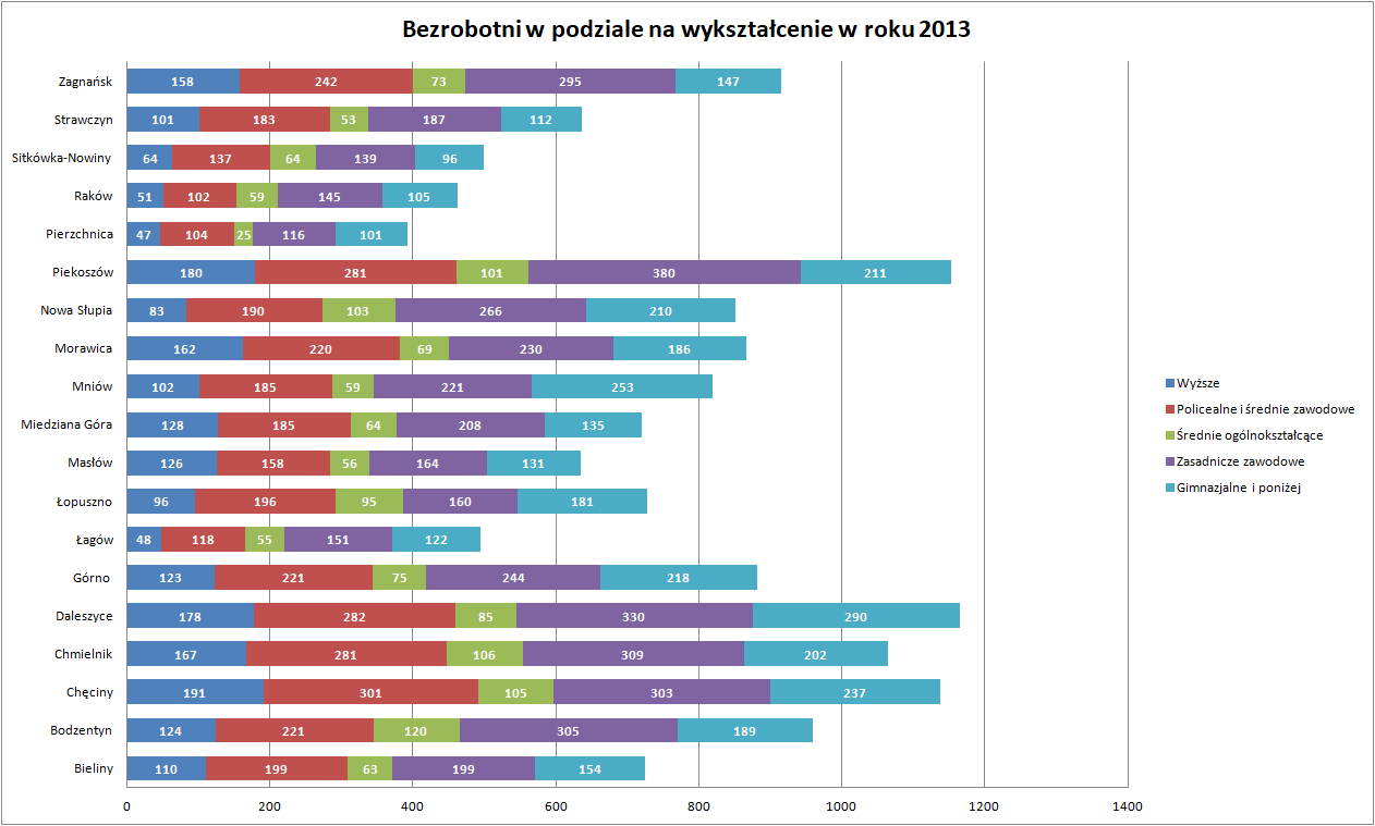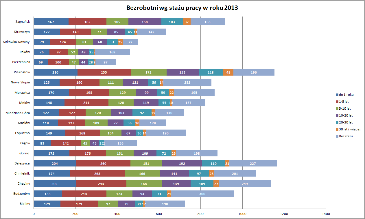 Statystyki - Stan bezrobocia w gminach 2013 - Powiatowy Urząd Pracy w Kielcach