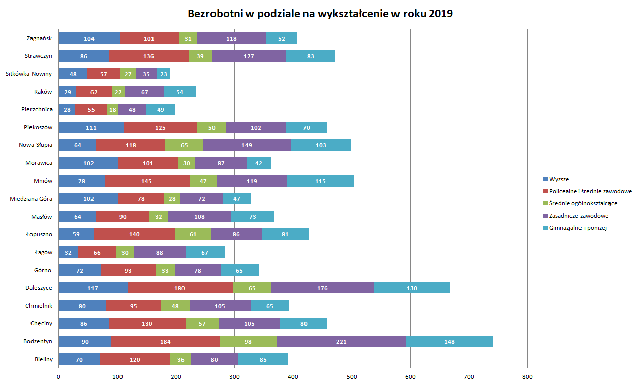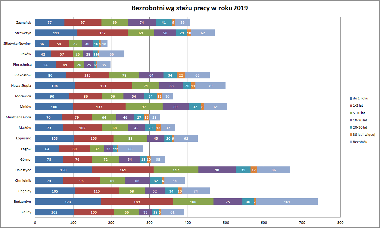 Statystyki - Stan bezrobocia w gminach 2019 - Powiatowy Urząd Pracy w Kielcach