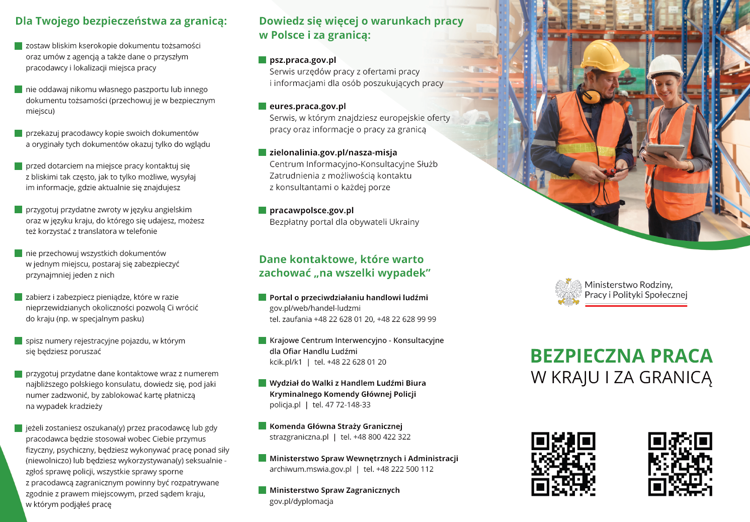 Bezpieczne wyjazdy do pracy za granicę - ulotka (oprac. MRPiPS)