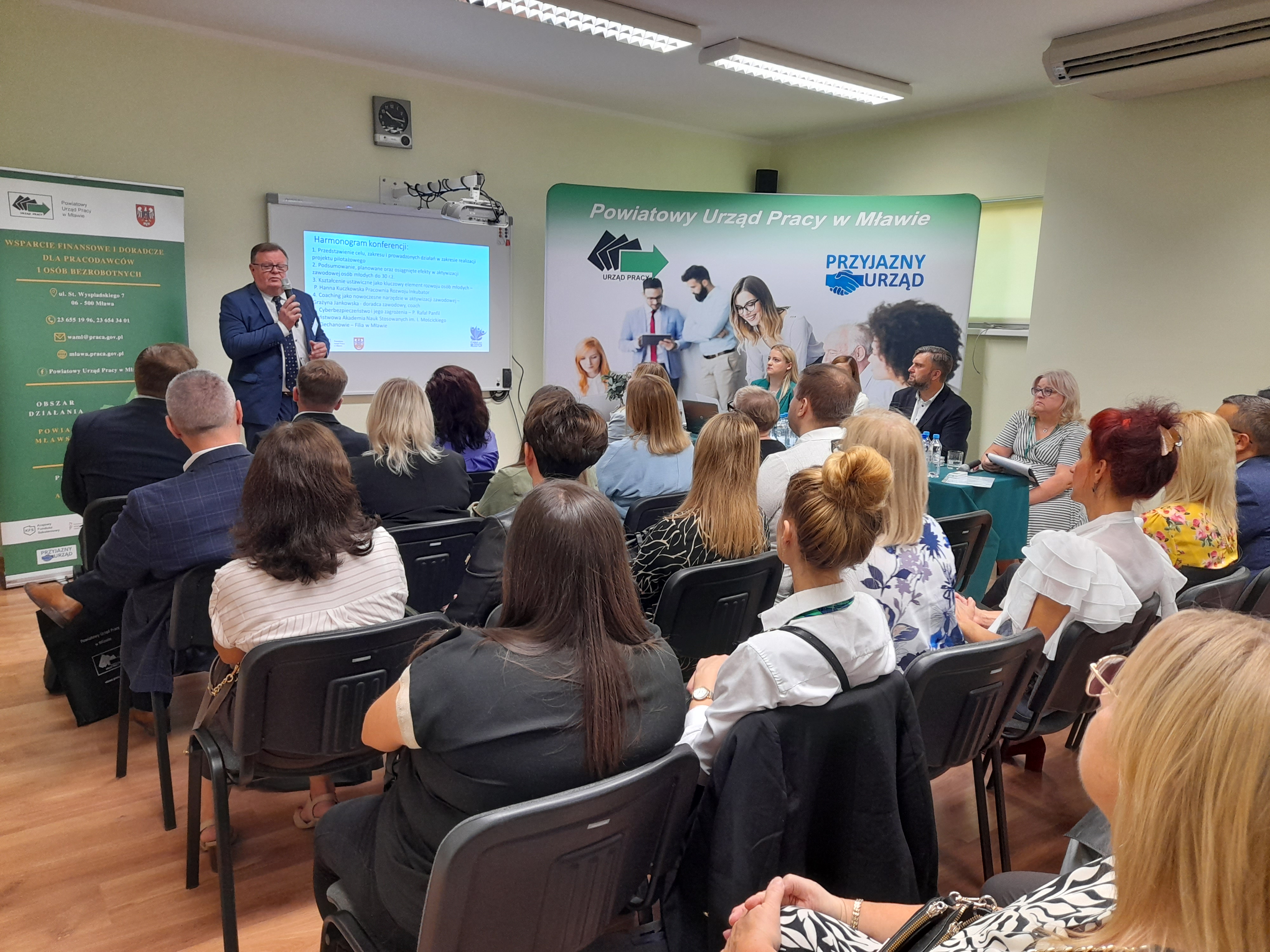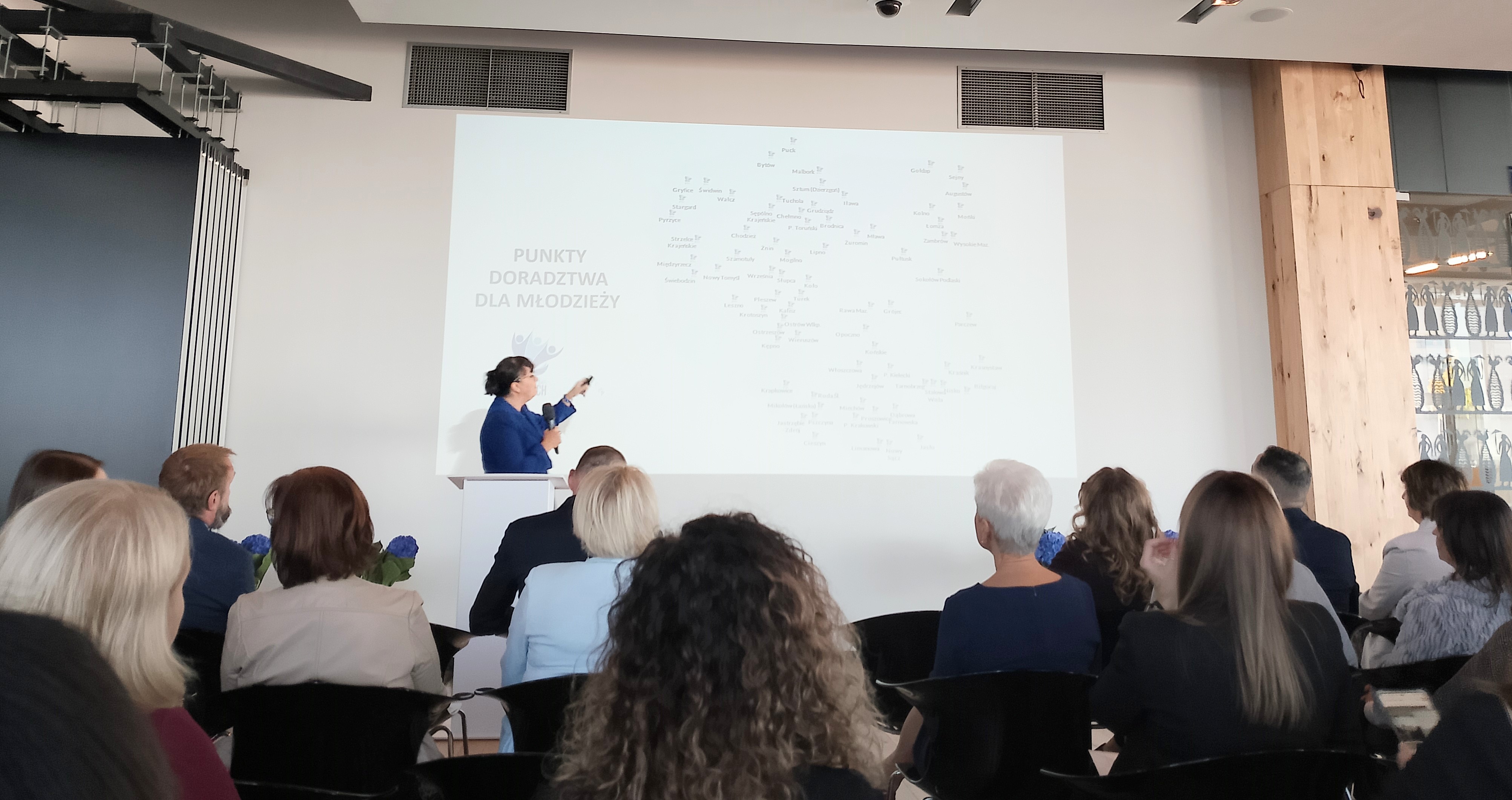 Dnia 21 października br. przedstawiciele naszego Urzędu wzięli udział w uroczystej konferencji zorganizowanej w Warszawie. Wśród uczestników i realizatorów projektu pilotażowego ,,Czas na Młodych – punkty doradztwa dla młodzieży" znaleźli się również przedstawiciele urzędów pracy z całej Polski. Dzięki temu mieliśmy okazję do wymiany spostrzeżeń, uwag, refleksji na temat prowadzonych działań aktywizacyjnych osób młodych do 30 roku życia z różnych regionów Polski. Uczestnicząc w Konferencji mieliśmy możliwość porównania działań innych urzędów z naszymi działaniami. Cele jakie założyliśmy sobie w projekcie były ambitne, ale wszystkie udało nam się zrealizować i to nadwyżką. Biorąc pod uwagę rezultaty projektu jakie osiągnęły inne urzędy jesteśmy przekonani, że znajdziemy się w czołówce liderów. Realizowane przez nas obszary i formy wsparcia cieszyły się niebywałym zainteresowaniem o czym świadczą osiągnięte wyniki. Odnieśliśmy sukces w liczbie zrealizowanych porad indywidualnych ze specjalistami oraz liczbie udzielonego wsparcia w postaci bonów. Po 13 miesiącach realizacji projektu osiągnęliśmy wysoką efektywność zatrudnieniową, co było najważniejszym priorytetem. Dziękujemy instytucjom, partnerom współpracującym oraz młodzieży za wspólny sukces i zaangażowanie w projekt pilotażowy. Myślimy, że w przyszłości nasz Urząd będzie miał możliwość realizowania kolejnego projektu dedykowanego dla osób młodych z powiatu mławskiego.