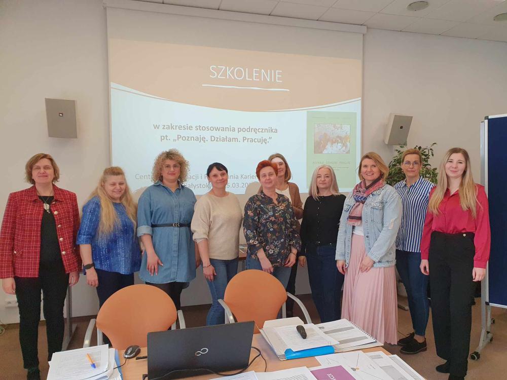 W dniach 24-25 marca 2025 r. w Wojewódzkim Urzędzie Pracy w Białymstoku odbyło się szkolenie doradców zawodowych z powiatowych urzędów pracy województwa podlaskiego, zorganizowane i przeprowadzone przez doradców zawodowych z Centrum Informacji i Planowania Kariery Zawodowej w Białymstoku. Uczestnicy szkolenia mieli okazję zapoznać się z wybranymi narzędziami i ćwiczeniami, zebranymi w podręczniku „Poznaję. Działam. Pracuję”, przygotowanym na zlecenie Ministerstwa Rodziny, Pracy i Polityki Społecznej.